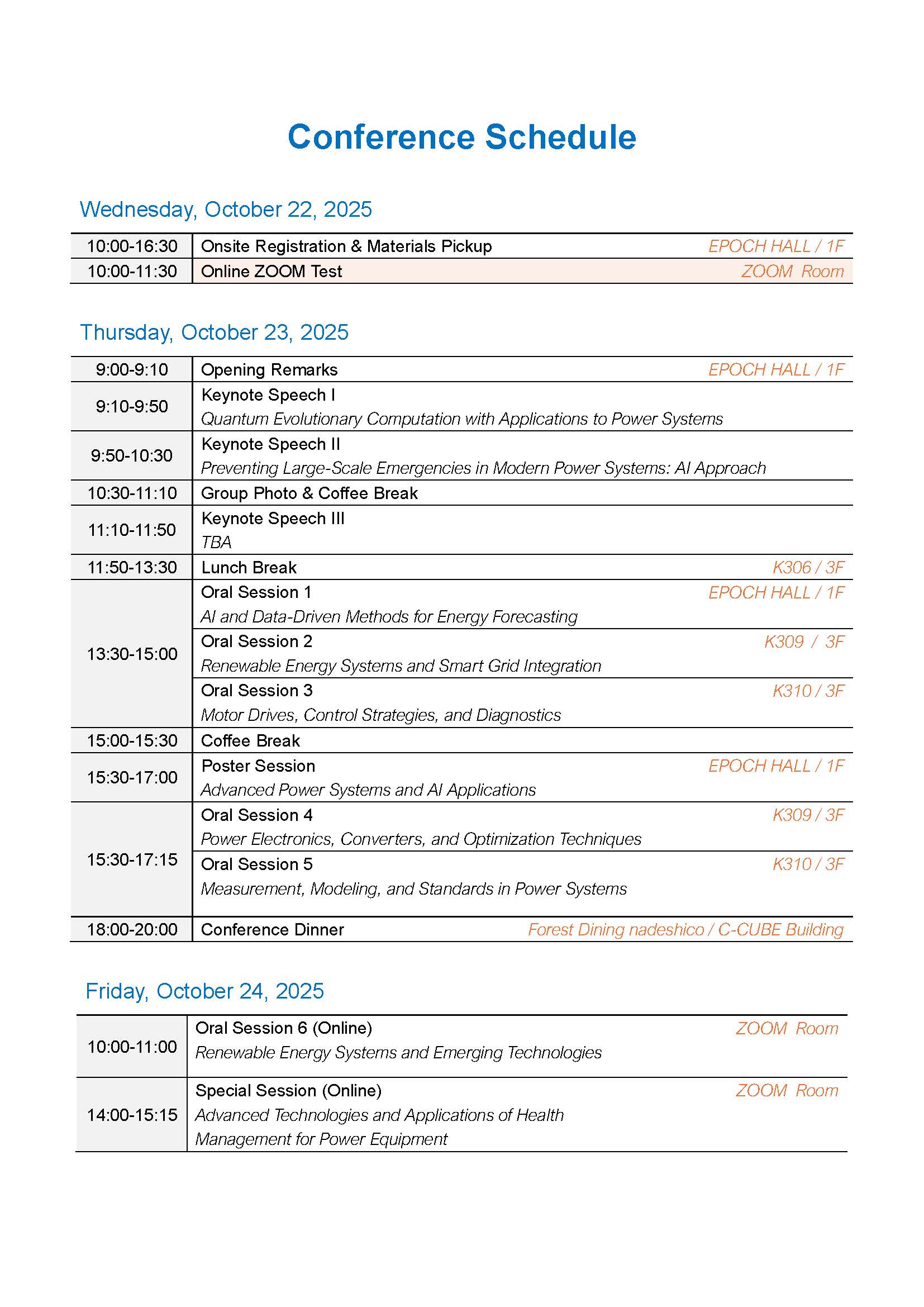 You are cordially invited to attend 2025 International Conference on Power Engineering and Electrical Technology (PEET) which will be held in Kusatsu, Shiga, Japan on October 22-24, 2025. Sponsored by IEEE Industry Applications Society (IEEE IAS), IEEE Power and Energy Society (IEEE PES) and Nankai University, and supported by IEEE Industrial Electronics Society (IEEE IES), Ritsumeikan University, Inonu University, American Society for Electrical Engineering, New Jersey Institute of Technology, and Frankfurt University of Applied Sciences, PEET 2025 will provide a platform for electrical engineers and researchers to discuss various research activities and latest developments in the area of power systems engineering with experts and scholars from around the world. This year's conference will feature keynote & invited talks on emerging technologies in power systems engineering given by world renowned scholars, and regular sessions with broad coverage and popular topics. Attendees will have the opportunity to meet and discuss with experts from all related fields.